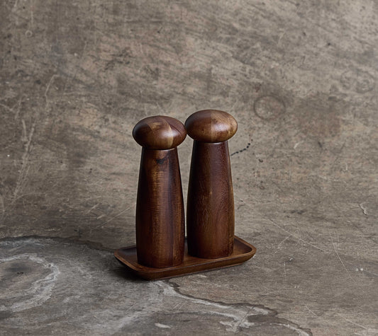Salt og pipar kvarnir á bakka · dökkt · gjafasett
