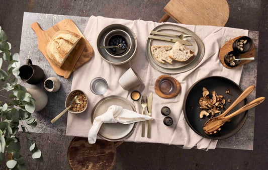 Organic 3 skálar á viðarbakka · Nordic Nude