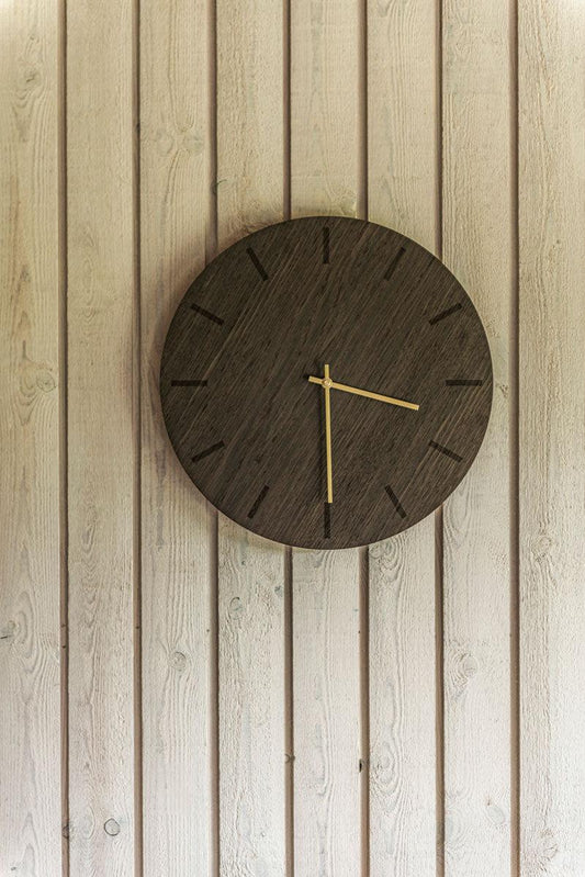 Veggklukka · 28 cm · Dökk Eik / Nero / Gylltir vísar